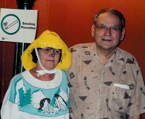 The president is show here with Glen Vinge wearing his 'true' hockey colours after their team won a few games. However, will they go on to win anything else this year? The president said that he would take on any bets...